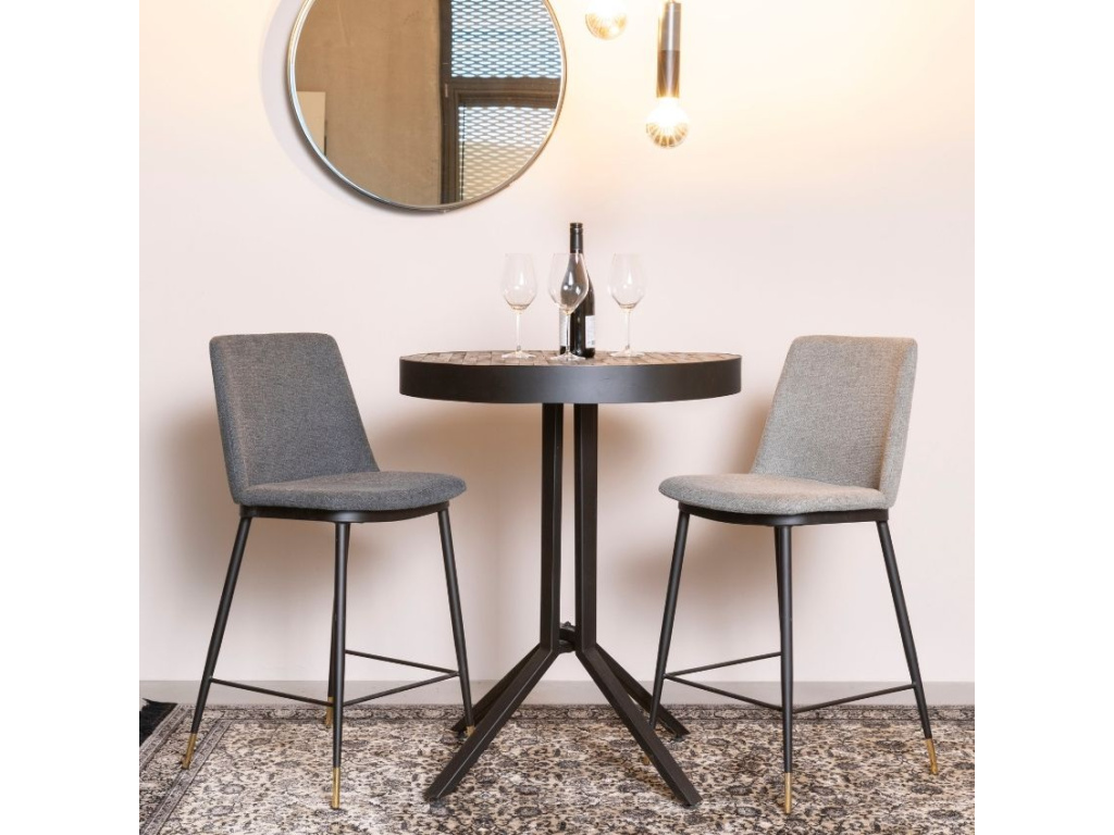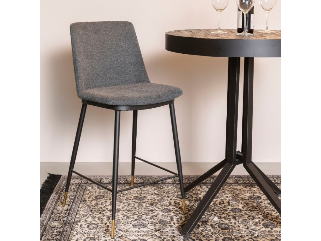 Stylová barová židle WLL LIONEL zaujme na první pohled svým minimalistickým designem. Příjemné látkové čalounění v tmavě šedé barvě a černě lakovaná kovová podnož se zlatými zakončeními vytváří společně atraktivní spojení, které do vašeho domova vnese nádech retro stylu. Praktickým bonusem je podnožka, která zaručí maximální komfort z posezení. Židle se skvěle hodí do moderních i klasických interiérů.