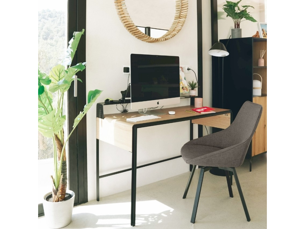 Čalouněná jídelní židle Kave Home Jenna zaujme na první pohled svým detailním zpracováním. Krásný čalouněný látkový sedák a kovová podnož vytvářejí atraktivní spojení, díky čemuž židle vynikne v každém interiéru. Opěradlo a područky tvoří celistvý oblý tvar, zatímco elegantní černá podnož dodává židli nadčasovost. Vychutnejte si posezení v eleganci a s nadstandardním designem s židlí Jenna!