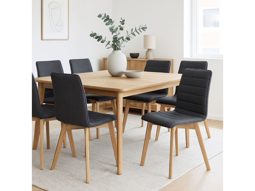 Kompaktní jídelní židle ROWICO GRACY díky svému modernímu designu skvěle zapadne do moderních interiérů. Židle je čalouněná látkou tmavě šedé barvy a čalounění je na přední straně ozvláštněno výraznými široké pruhy. Podnož židle má přírodní barvu a tvoří ji masívní dubové dřevo. GRACY je dostupná také ve světle šedém barevném provedení.