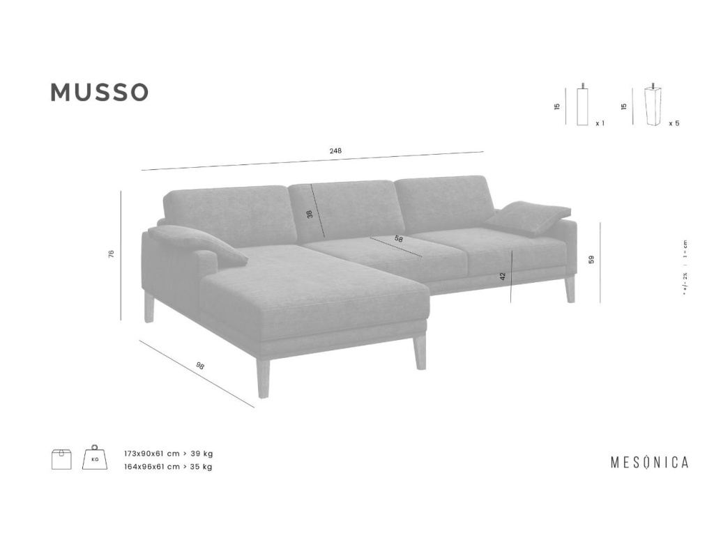 Designová rohová pohovka MESONICA Musso I bude díky svému úchvatnému vzhledu nepřehlédnutelnou součástí Vaší domácnosti. Stabilní podnož z bukového dřeva ve světlé barvě je skvěle doplněna o tmavě šedé čalounění z kvalitní tkaniny, která dodává pohovce estetický vzhled a nadprůměrnou životnost.