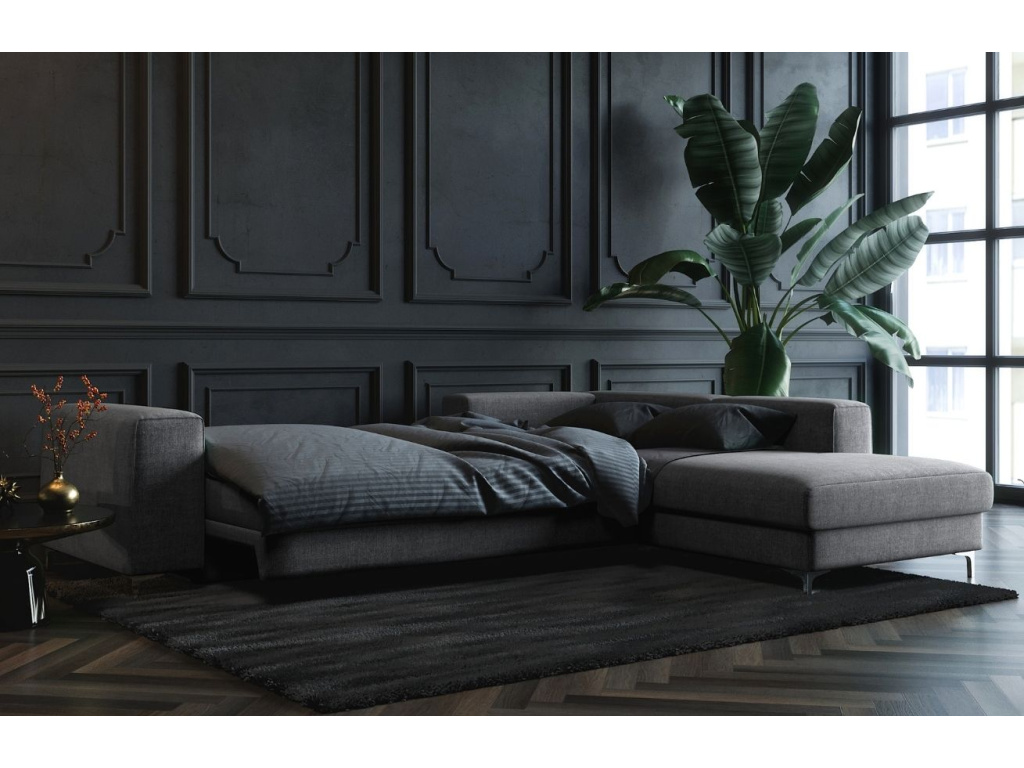 Moderní čtyřmístná pohovka DEVICHY Rothe s jednoduchou konstrukcí uspokojí potřeby i toho nejnáročnějšího zákazníka. Pohovku lze snadným rozložením přeměnit na pohodlné a dostatečně velké lůžko. Její čalounění si na první dotyk zamilujete - je tvořeno kvalitní látkou v tmavě šedém provedení, která je charakteristická svou vysokou odolností a speciální vodoodpudivou úpravou. Reprezentativní a exkluzivní vzhled pohovky v sobě dokonale kombinuje pohodlí a styl.