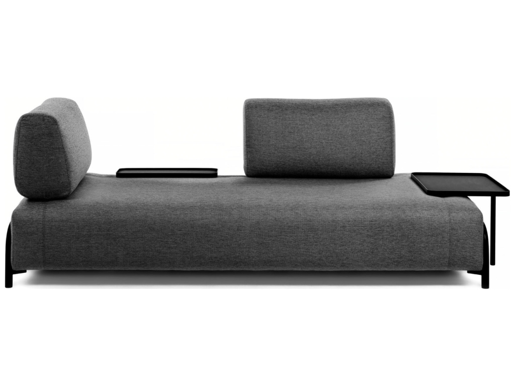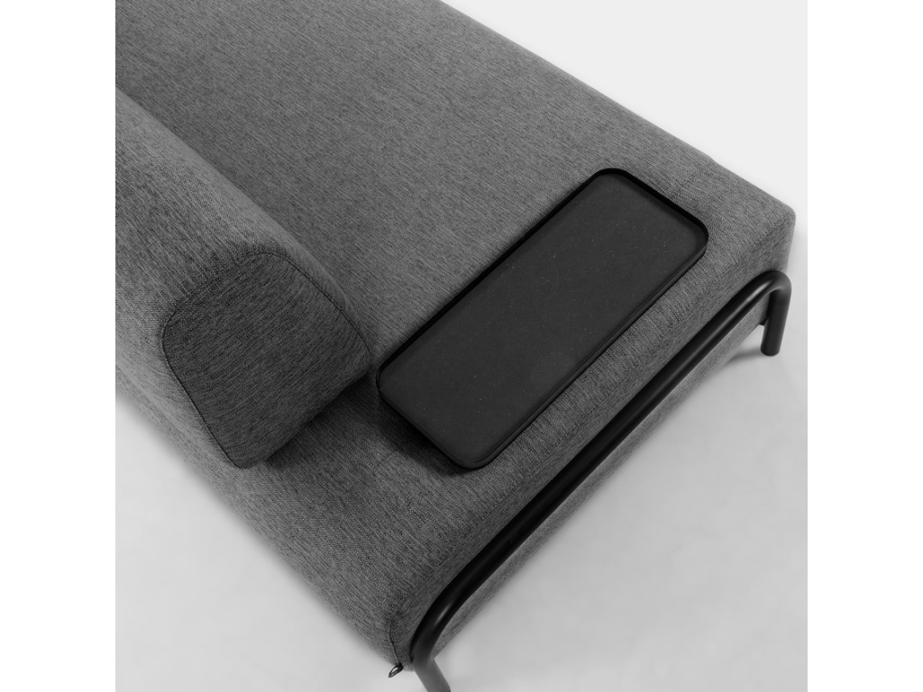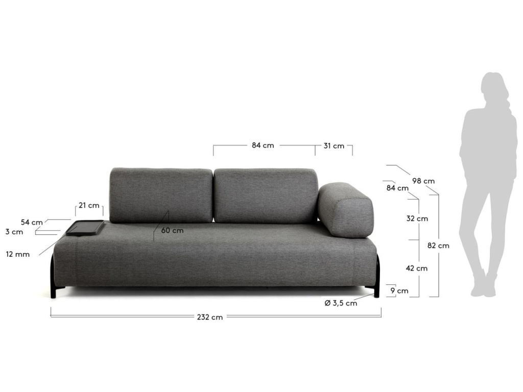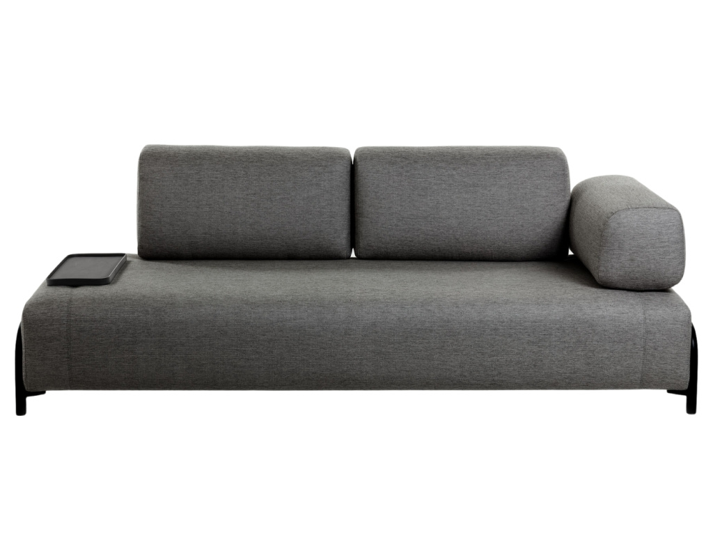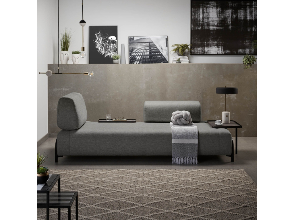 Stylová pohovka Kave Home Compo zaujme svým moderním vzhledem. Příjemné látkové čalounění doplněno o designovou kovovou podnož vytváří atraktivní kontrast, který do vašeho domova vnese příjemnou atmosféru a osobitý design. Praktickým bonusem je malý kovový odkládací stolek, který poskytne dostatek prostoru pro váš drobný inventář. Nakombinujte si pohovku Compo dle svých představ se stolkem, polštáři či dalšími pohovkami ze stejnojmenné řady.