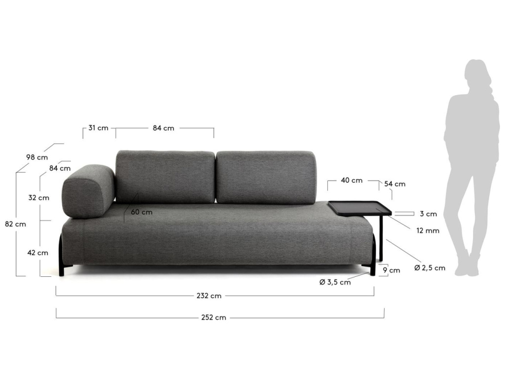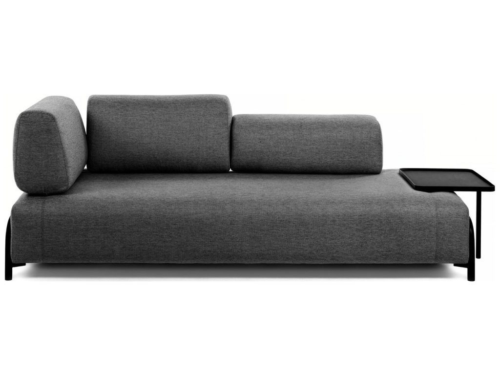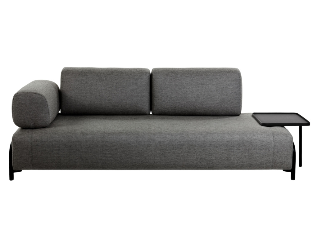 Stylová pohovka Kave Home Compo zaujme svým moderním vzhledem. Příjemné látkové čalounění doplněno o designovou kovovou podnož vytváří atraktivní kontrast, který do vašeho domova vnese příjemnou atmosféru a osobitý design. Praktickým bonusem je velký kovový odkládací stolek, který poskytne dostatek prostoru pro váš drobný inventář. Nakombinujte si pohovku Compo dle svých představ se stolkem, polštáři či dalšími pohovkami ze stejnojmenné řady.
