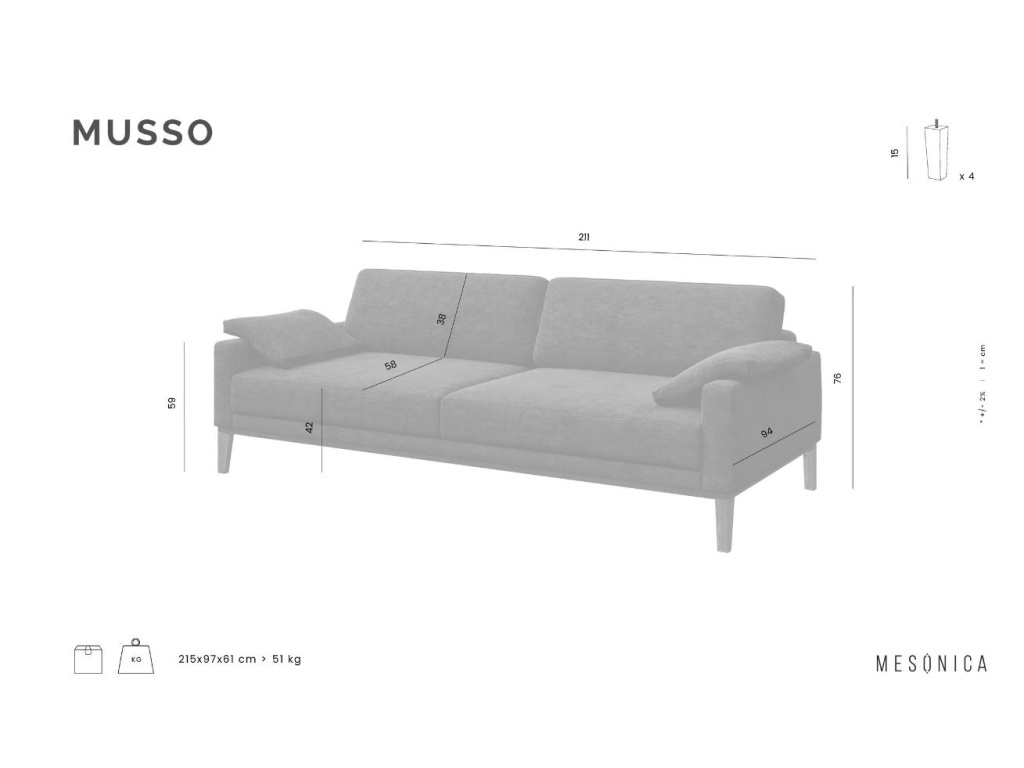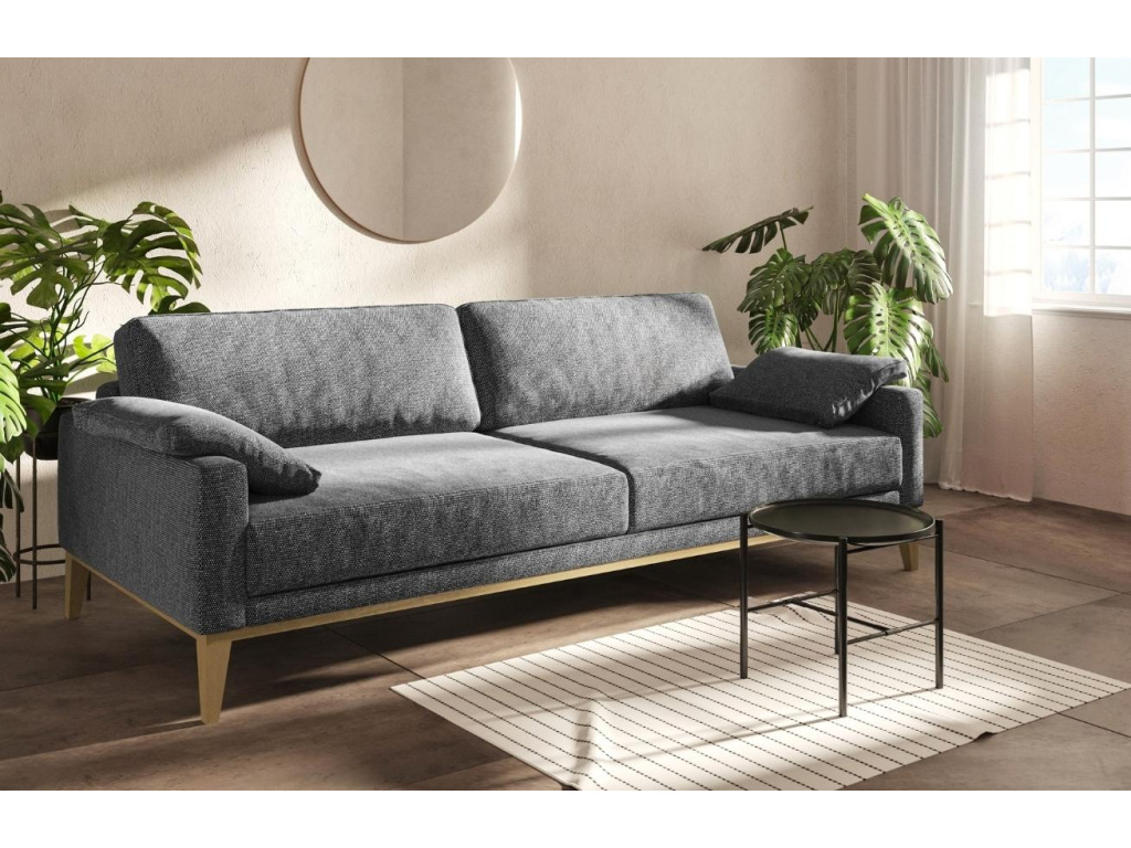Designová pohovka MESONICA Musso bude díky svému úchvatnému vzhledu nepřehlédnutelnou součástí vaší domácnosti. Stabilní podnož z bukového dřeva v tmavé barvě je skvěle doplněna o tmavě šedé čalounění z kvalitní tkaniny, která dodává pohovce estetický vzhled a nadprůměrnou životnost.