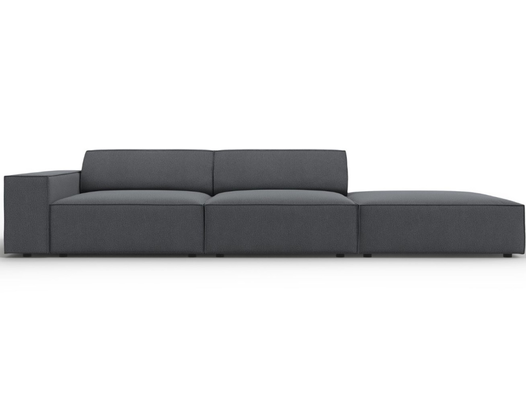 Prostorná modulární trojmístná pohovka Jodie od značky Micadoni zaujme svou krásnou siluetou. Elegantní strukturovaná tkanina, která se značí viditelnou vazbou vláken bez lesku. Látka prošla testem na cigarety, díky tomu je pohovka vhodná i do komerčních prostor. Její polstrovaný tvar vám zaručí plnohodnotný odpočinek, zatímco hluboký sedák umožní dokonalou relaxaci. Opřít se můžete také o tvarované opěráky a široké područky, které vybízejí k nespoutanému lenošení. Nízká podnož ladí s útulnou siluetou nábytku. Velký výběr modulů vám umožní vytvořit si kombinace, které budou nejlépe vyhovovat vašemu obývacímu pokoji v minimalistickém či skandinávském stylu.