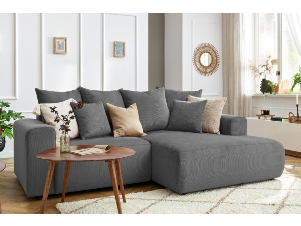 Více infoTmavě šedá manšestrová rohová pohovka Enjoy 237 cm, pravá