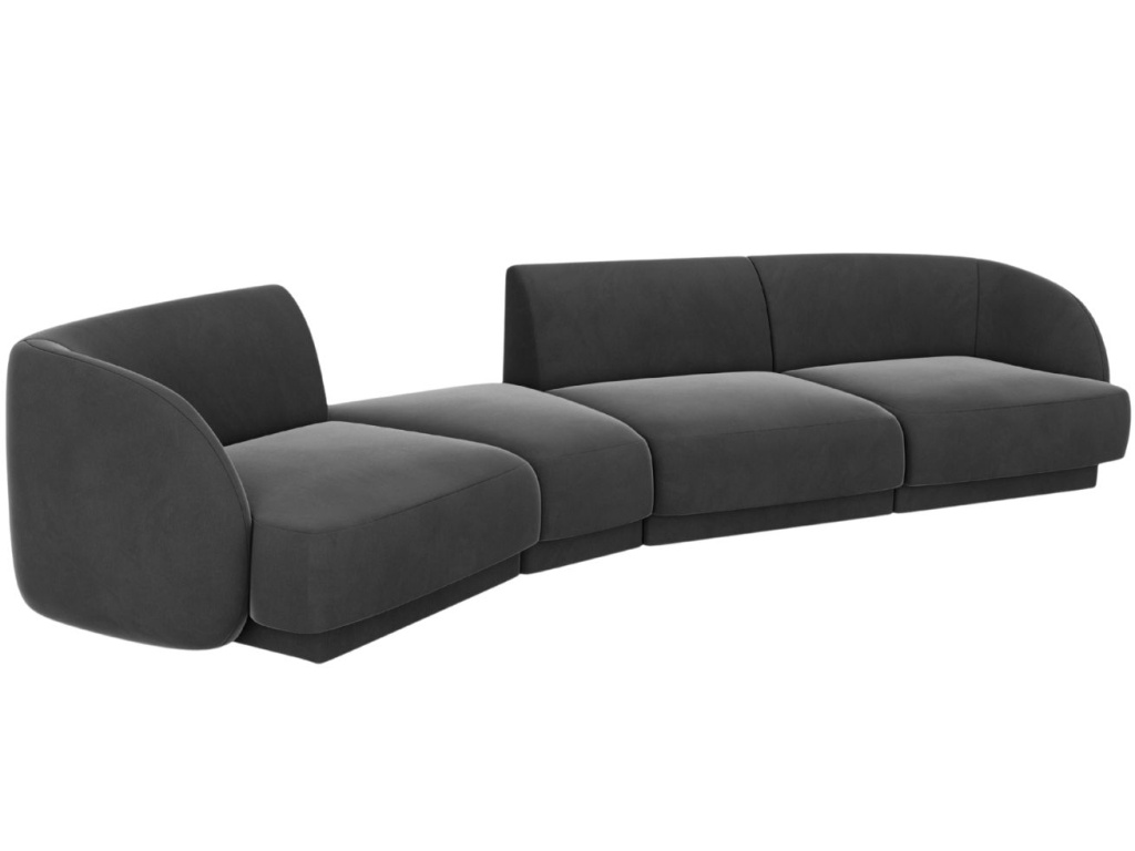 Čtyřmístnou pohovku Miley od značky Micadoni si zamilujete! Její elegantně obloukovité opěradlo vás doslova zve k odpočinku, zatímco jemně zapuštěná základna dodává celému kusu vzdušnost a lehkost. Měkký, odolný a na pohled příjemný samet poskytuje nábytku lákavý vzhled, který vnese do místnosti záři a pocit sofistikovanosti. Pohovka je ideální volbou do interiéru v moderním nebo skandinávském stylu. K pohovce je možné přikoupit další produkty z kolekce Miley. Díky tomu si můžete vytvořit sedací soupravu, kterou je vhodné kombinovat se skleněným nebo dřevěným konferenčním stolkem.