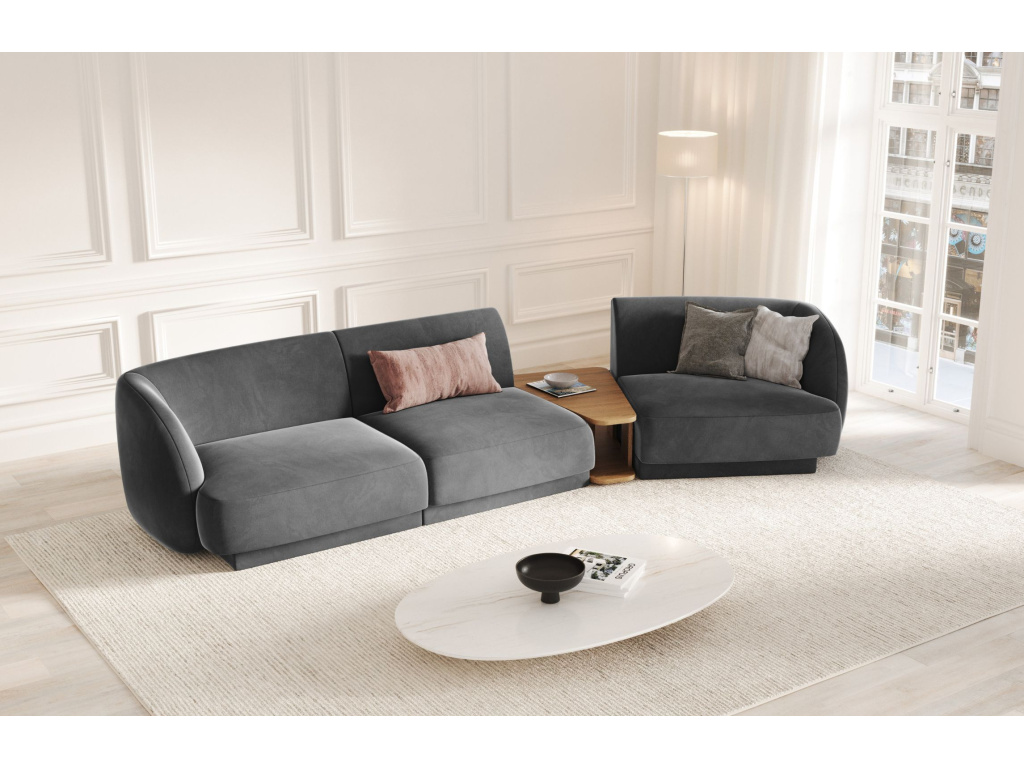 Čtyřmístnou pohovku Miley od značky Micadoni si zamilujete! Její elegantně obloukovité opěradlo vás doslova zve k odpočinku, zatímco jemně zapuštěná základna dodává celému kusu vzdušnost a lehkost. Měkký, odolný a na pohled příjemný samet poskytuje nábytku lákavý vzhled, který vnese do místnosti záři a pocit sofistikovanosti. Pohovka je ideální volbou do interiéru v moderním nebo skandinávském stylu. K pohovce je možné přikoupit další produkty z kolekce Miley. Díky tomu si můžete vytvořit sedací soupravu, kterou je vhodné kombinovat se skleněným nebo dřevěným konferenčním stolkem.