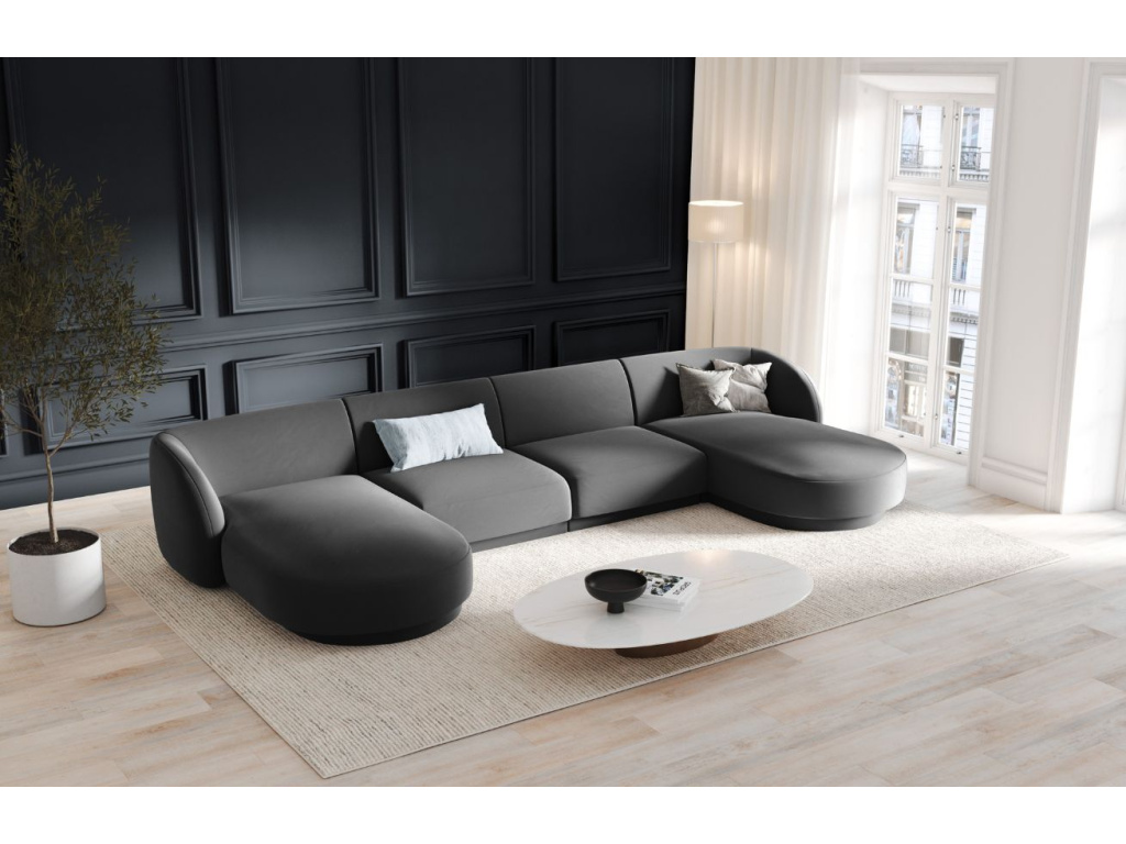 Rohovou pohovku Miley od značky Micadoni si zamilujete! Její obloukovitě tvarované opěradlo vybízí k tomu, abyste se na chvíli pohodlně usadili. Díky mírně zapuštěné základně dodává sezení vznášející se charakter, který dotváří vzhled připomínající oblak. Měkký, odolný a na pohled příjemný samet poskytuje nábytku lákavý vzhled, který vnese do místnosti záři a pocit sofistikovanosti. Pohovka je ideální volbou do interiéru v moderním nebo skandinávském stylu. K pohovce je možné přikoupit další produkty z kolekce Miley. Díky tomu si můžete vytvořit sedací soupravu, kterou je vhodné kombinovat se skleněným nebo dřevěným konferenčním stolkem.