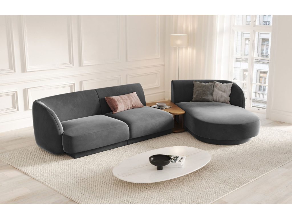 Trojmístnou rohovou pohovku Miley od značky Micadoni si zamilujete! Její elegantně obloukovité opěradlo vás doslova zve k odpočinku, zatímco jemně zapuštěná základna dodává celému kusu vzdušnost a lehkost. Měkký, odolný a na pohled příjemný samet poskytuje nábytku lákavý vzhled, který vnese do místnosti záři a pocit sofistikovanosti. Pohovka je ideální volbou do interiéru v moderním nebo skandinávském stylu. K pohovce je možné přikoupit další produkty z kolekce Miley. Díky tomu si můžete vytvořit sedací soupravu, kterou je vhodné kombinovat se skleněným nebo dřevěným konferenčním stolkem.