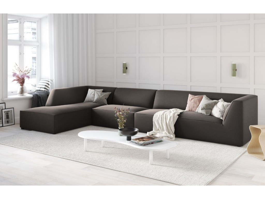 Rohová pohovka Ruby od společnosti Micadoni se stane příjemným doplňkem vašeho obývacího pokoje nebo společenské místnosti. Příjemné sametové čalounění s mírným leskem obsahuje ochranu, která zpomaluje absorpci tekutin – tekutina se shromažďuje na povrchu materiálu, aniž by pronikla hluboko do vláken. Díky tomu lze snadno odstranit rozlitou kávu nebo čaj během několika vteřin pomocí savého hadříku nebo papírové utěrky. Látka navíc prošla testem na cigarety, kdy je čalounění odolné proti tlení a vznícení. Kombinací různých modulů a velikostí pohovky si můžete vytvořit různé konfigurace sezení a získat si tak útulné posezení podle svých představ. Sezení Ruby doporučujeme spojit s jednoduchým konferenčním stolkem, na který můžete umístit svíčky, dekorace nebo občerstvení, a vytvořit tak jednoduchou, ale sofistikovanou skandinávskou obývací sestavu.