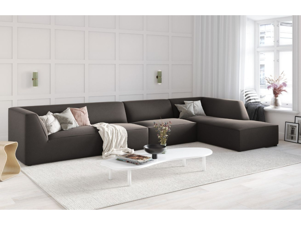 Rohová pohovka Ruby od společnosti Micadoni se stane příjemným doplňkem vašeho obývacího pokoje nebo společenské místnosti. Příjemné sametové čalounění s mírným leskem obsahuje ochranu, která zpomaluje absorpci tekutin – tekutina se shromažďuje na povrchu materiálu, aniž by pronikla hluboko do vláken. Díky tomu lze snadno odstranit rozlitou kávu nebo čaj během několika vteřin pomocí savého hadříku nebo papírové utěrky. Látka navíc prošla testem na cigarety, kdy je čalounění odolné proti tlení a vznícení. Kombinací různých modulů a velikostí pohovky si můžete vytvořit různé konfigurace sezení a získat si tak útulné posezení podle svých představ. Sezení Ruby doporučujeme spojit s jednoduchým konferenčním stolkem, na který můžete umístit svíčky, dekorace nebo občerstvení, a vytvořit tak jednoduchou, ale sofistikovanou skandinávskou obývací sestavu.