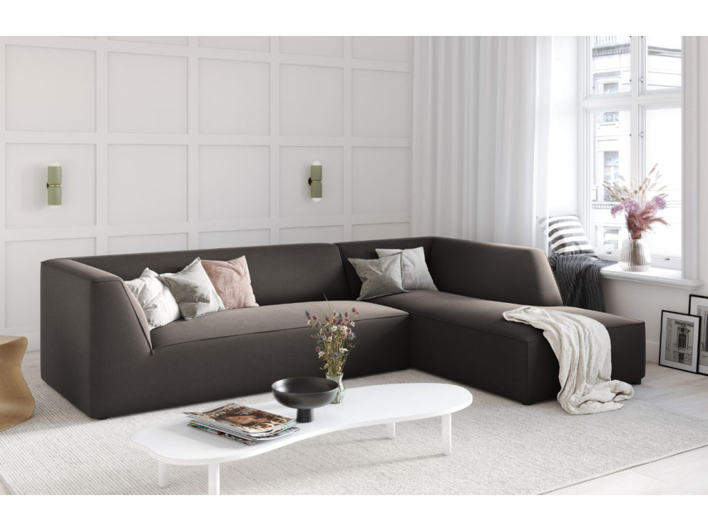 Rohová pohovka Ruby od společnosti Micadoni se stane příjemným doplňkem vašeho obývacího pokoje nebo společenské místnosti. Příjemné sametové čalounění s mírným leskem obsahuje ochranu, která zpomaluje absorpci tekutin – tekutina se shromažďuje na povrchu materiálu, aniž by pronikla hluboko do vláken. Díky tomu lze snadno odstranit rozlitou kávu nebo čaj během několika vteřin pomocí savého hadříku nebo papírové utěrky. Látka navíc prošla testem na cigarety, kdy je čalounění odolné proti tlení a vznícení. Kombinací různých modulů a velikostí pohovky si můžete vytvořit různé konfigurace sezení a získat si tak útulné posezení podle svých představ. Sezení Ruby doporučujeme spojit s jednoduchým konferenčním stolkem, na který můžete umístit svíčky, dekorace nebo občerstvení, a vytvořit tak jednoduchou, ale sofistikovanou skandinávskou obývací sestavu.