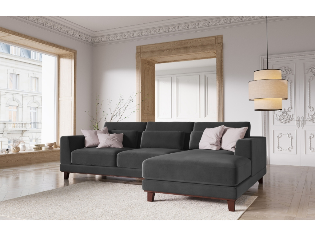 Náruč elegantní rohové pohovky Leon od značky Windsor & Co vám nabídne naprosto dokonalé místo určené k odpočinku a relaxaci. S pěnou vyplněnými opěradly a sedákem je Leon dokonalou směsí stylu, pohodlí a neodolatelného kouzla. Pohovka čalouněná příjemnou sametovou látkou v tmavě šedém provedení se stane přímo královským místem v moderně zařízených prostorech, ať už bytových či komerčních. Tkanina je velmi odolná proti oděru, čímž zaručí dlouhodobé používání bez známek opotřebení. Atraktivní design s nádechem luxusu a klasiky jsou přesné známky pohovky Leon. Osobitost pohovce dodává podnož z dubového dřeva. Pro sjednocení vašeho sedacího koutu doporučujeme pohovku doplnit také stylovým křeslem ze stejnojmenné série. Odpočiňte si a relaxujte ve stylu!