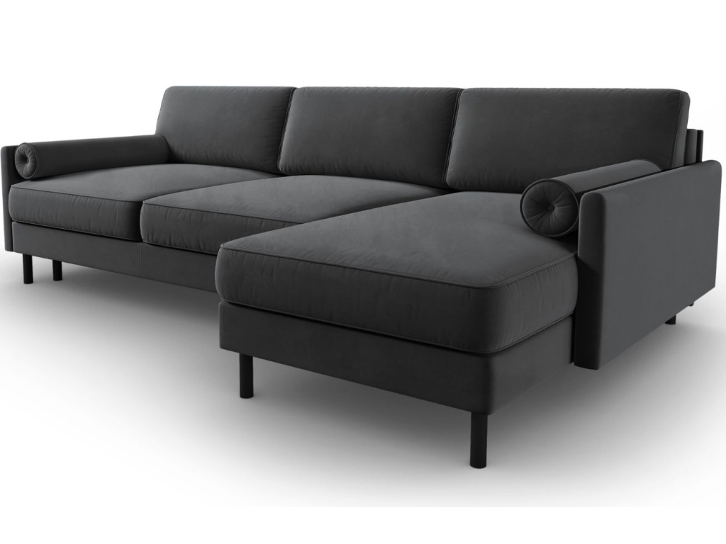Sametová rozkládací pohovka Scott 212 cm, pravá