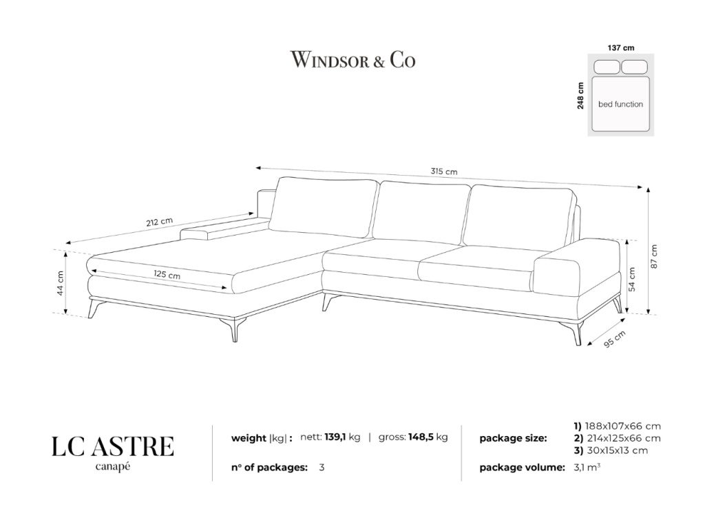Luxus, maximální pohodlí a moderní design - to vše do vaší společenské místnosti přinese pohovka Astre od značky Windsor & Co! V případě nečekaných návštěv můžete pohovku hravě rozložit a vytvořit tak místo na přespání. Pohovka navíc disponuje úložným boxem, kam lze uschovat deky i polštáře a mít vše ihned po ruce. Astre je čalouněná vysoce odolnou sametovou látkou proti otěru, tudíž vám vydrží sloužit mnoho let a zároveň se stává skvělým adeptem i pro komerční prostory.