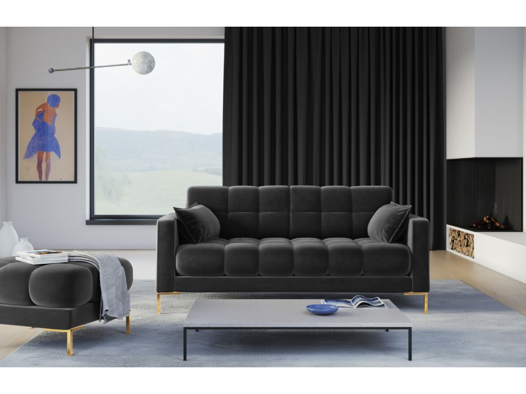 Elegantní třímístná pohovka Mamaia od značky MICADONI zaujme na první pohled svým nadýchaným vzhledem. Velmi příjemné sametové čalounění a zlatá kovová podnož vytváří kontrast, který interiéru dodá elegantní vzhled a nádech luxusu. Díky zajímavému prošívání vzniká jemný design, který do vašeho domova vnese lehkost a styl. Opěrné polštářky zvednou úroveň vašeho odpočinku o stupeň výš. Nechte se obklopit komfortem ve společnosti pohovky Mamaia.