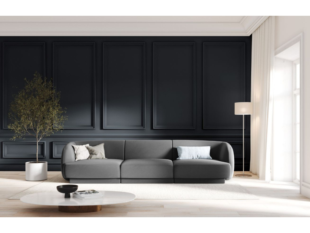 Trojmístnou pohovku Miley od značky Micadoni si zamilujete! Její obloukovitě tvarované opěradlo vybízí k tomu, abyste se na chvíli pohodlně usadili. Díky mírně zapuštěné základně dodává sezení vznášející se charakter, který dotváří vzhled připomínající oblak. Měkký, odolný a na pohled příjemný samet poskytuje nábytku lákavý vzhled, který vnese do místnosti záři a pocit sofistikovanosti. Pohovka je ideální volbou do interiéru v moderním nebo skandinávském stylu. K pohovce je možné přikoupit další produkty z kolekce Miley. Díky tomu si můžete vytvořit sedací soupravu, kterou je vhodné kombinovat se skleněným nebo dřevěným konferenčním stolkem.