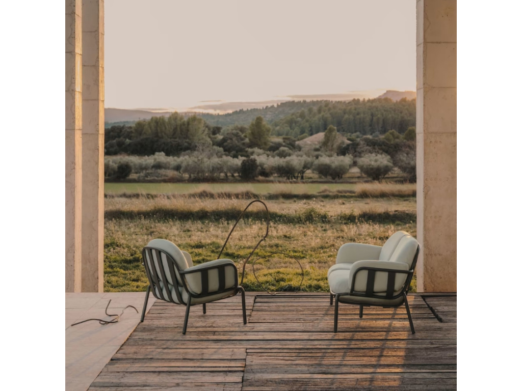 Více infoTmavě šedé hliníkové zahradní křeslo Kave Home Joncols s polštáři