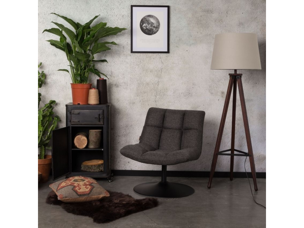 Tmavě šedé designové křeslo Bar nabízí maximální komfort a jedinečný styl. Měkký, prošívaný sedák čalouněný kvalitní látkou v kombinaci s černě lakovanou otočnou podnoží tvoří působivý celek. Křeslo Bar příjemně doplní každý moderní interiér a stane se vaším oblíbeným společníkem při relaxaci.