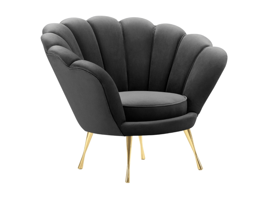 Křeslo Kingston značky Cosmopolitan Design představuje spojení elegance a neotřelého vzhledu. Jeho jemně lesklé sametové čalounění v tmavě šedém odstínu je hebké a příjemné na dotek. Tkanina je velmi odolná proti oděru a absorpci tekutin, čímž zaručí dlouhodobé používání bez známek opotřebení. Celkový design křesla doplňuje zlatě lakovaná kovová podnož. Pro dokonale sladěný sedací kout doporučujeme křeslo doplnit o pohovku ze stejnojmenné série. Všechny produkty nabízíme v osmi barevných provedeních. Užijte si pohodlí a styl v jednom!