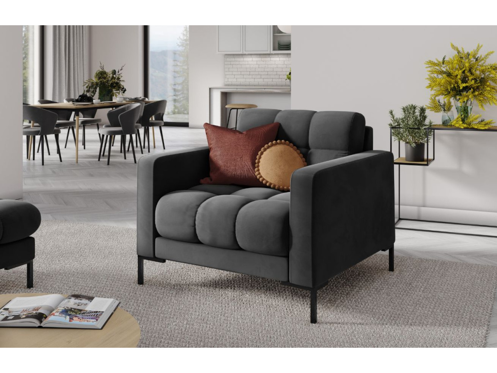 Chcete si krásně vybavit svůj domov? Křeslo Mamaia je pro to ideální volbou. Tento kus nábytku se vyznačuje jednoduchým, ale vkusným tvarem. Čalounění je vyrobeno z tkaniny imitující samet s jemným leskem, které je velmi měkké a hedvábné na dotek. Navíc se značí dobrou odolností proti oděru, díky tomu je vhodné i do komerčních prostor. Kromě estetických kvalit je křeslo také pozoruhodně pohodlné a ergonomické. Celek doplňují elegantní knoflíky na opěradle, které křeslu dodávají noblesu a stylové zakončení. Sezení je podtrženo kovovou, černě lakovanou podnoží. Mamaia je v nabídce v řadě barevném provedení. Vyberte si to pravé do vašeho interiéru!
