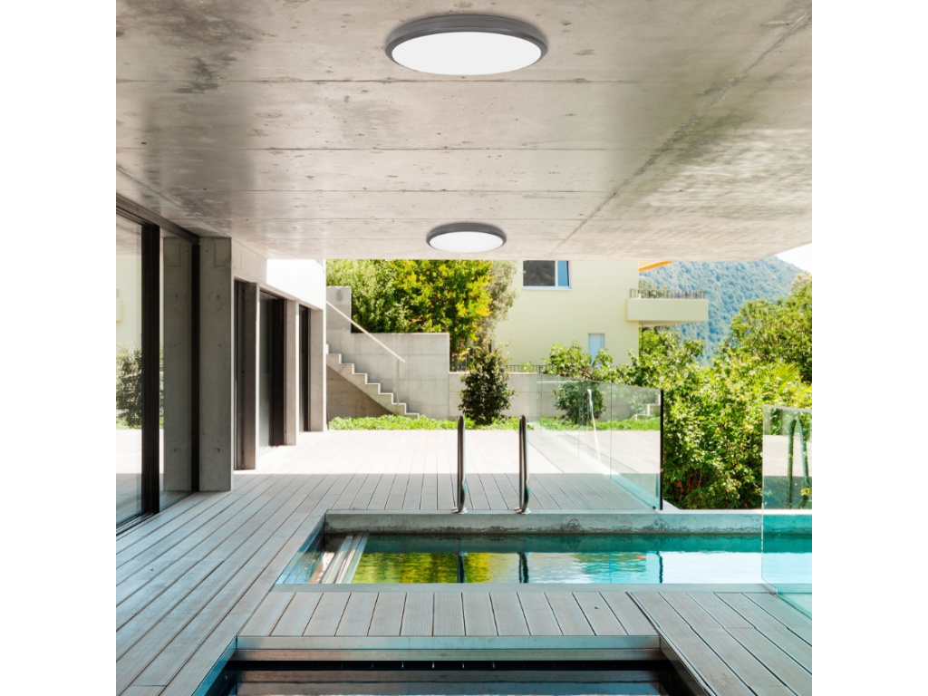 Nadčasová kolekce venkovních stropních světel Tommy od značky Nova Luce vás okouzlí svým minimalistickým designem. Světla v tmavě šedém odstínu jsou ideální pro osvětlení vaší pergoly či vchodových dveří. Díky světlému stínidlu a teplotou světla 3000 K budou vytvářet příjemné teplé světlo. Svítidla Tommy perfektně zapadnou do minimalisticky a moderně laděných prostor.