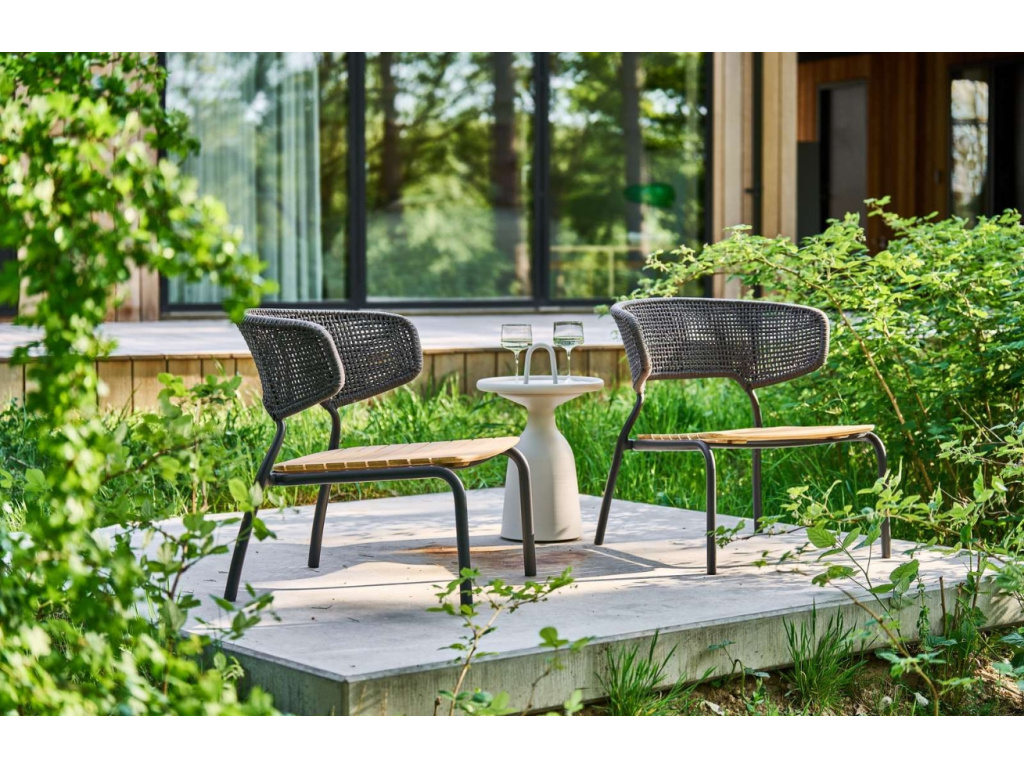 Křeslo Mindo 101 představuje elegantní a komfortní designový kousek, který vytvořil dánský designér Thomas E. Alken. Vytvořte si na vaší zahradě stylové posezení, kde budete moct strávit výjimečné chvíle s rodinou a přáteli – série Mindo 101 nabízí také stoly a křesla, takže prostor může být dokonale sjednocený. Křeslo v sobě spojuje lakovanou hliníkovou konstrukci a opěradlo tvořené zajímavým výpletem. To vše vkusně doplňuje sedák z masivního teakové dřeva. Toto materiálové spojení a originální tvarování produktu dává dohromady výrazný kus zahradního nábytku, který rozhodně stojí za pozornost!