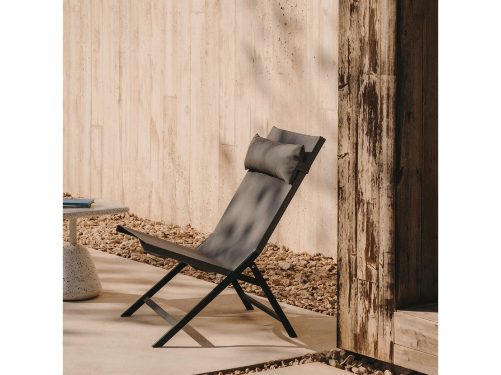 Vychutnejte si zasloužený odpočinek s černým hliníkovým skládacím křeslem Canutells od značky Kave Home. Jeho moderní jednoduchý design a textilní povrchová úprava v černé barvě se bude skvěle hodit do každé zahrady. Díky své lehké a pevné konstrukci z odolného materiálu se z něj stane ideální doplněk pro vaši zahradu. Praktickým detailem je odnímatelný polštář, který si můžete posunout do úrovně hlavy i beder. V případě potřeby lze křeslo jednoduše složit a ušetřit tak při jeho skladování místo.