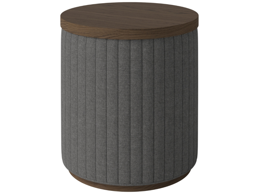 Podívám seTmavě šedý čalouněný taburet Rigato 40 cm s tmavým dubovým podnosem