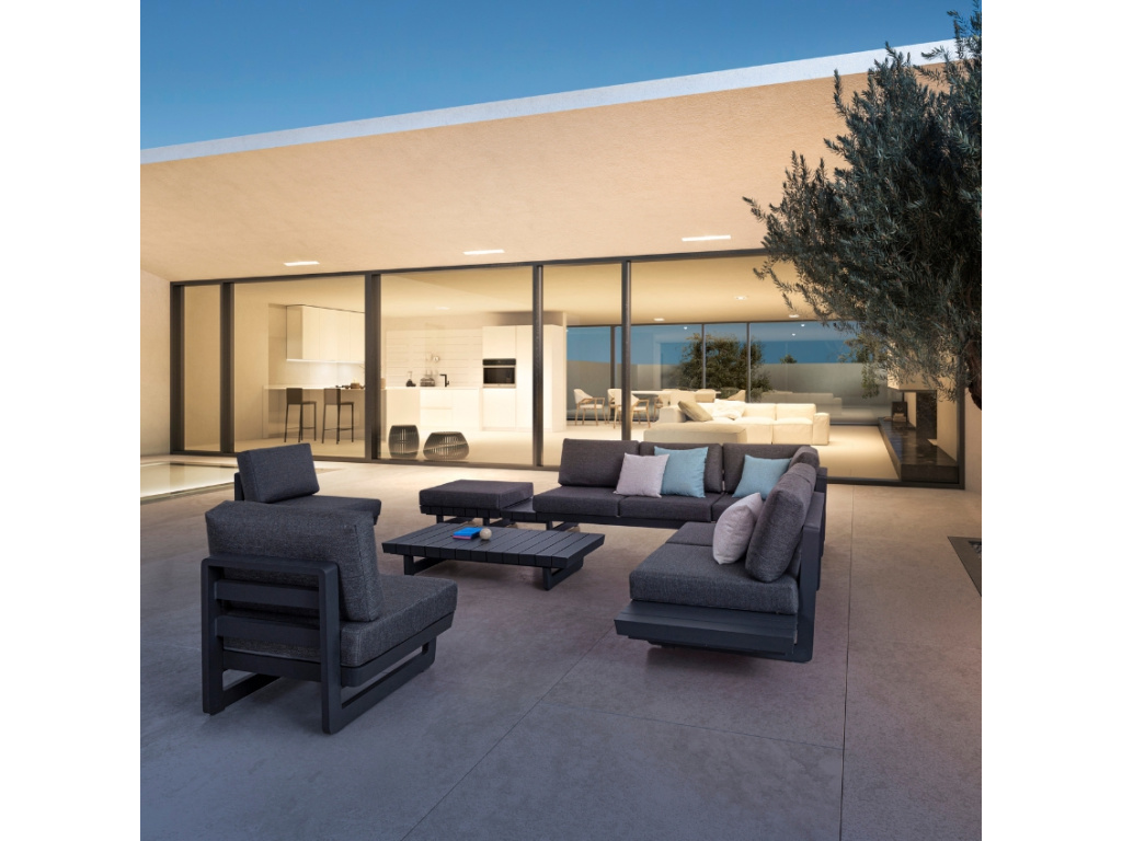 Designový stolek Infinity zaujme čistou linií a robustním vzhledem, který perfektně doplní venkovní sezení v industriálním nebo minimalistickém stylu. Jeho konstrukce z práškově lakovaného hliníku zajišťuje vysokou odolnost vůči povětrnostním vlivům a nevyžaduje téměř žádnou údržbu. Díky kompaktním rozměrům bude ideální pro servírování kávy, letních drinků nebo jako podklad pro lucernu či květináč. Matný povrch v antracitovém odstínu působí elegantně a snadno jej zkombinujete s ostatním zahradním nábytkem. Ať už ho postavíte na terasu nebo vedle lehátka u bazénu, vytvoříte tím promyšlený a stylový kout.