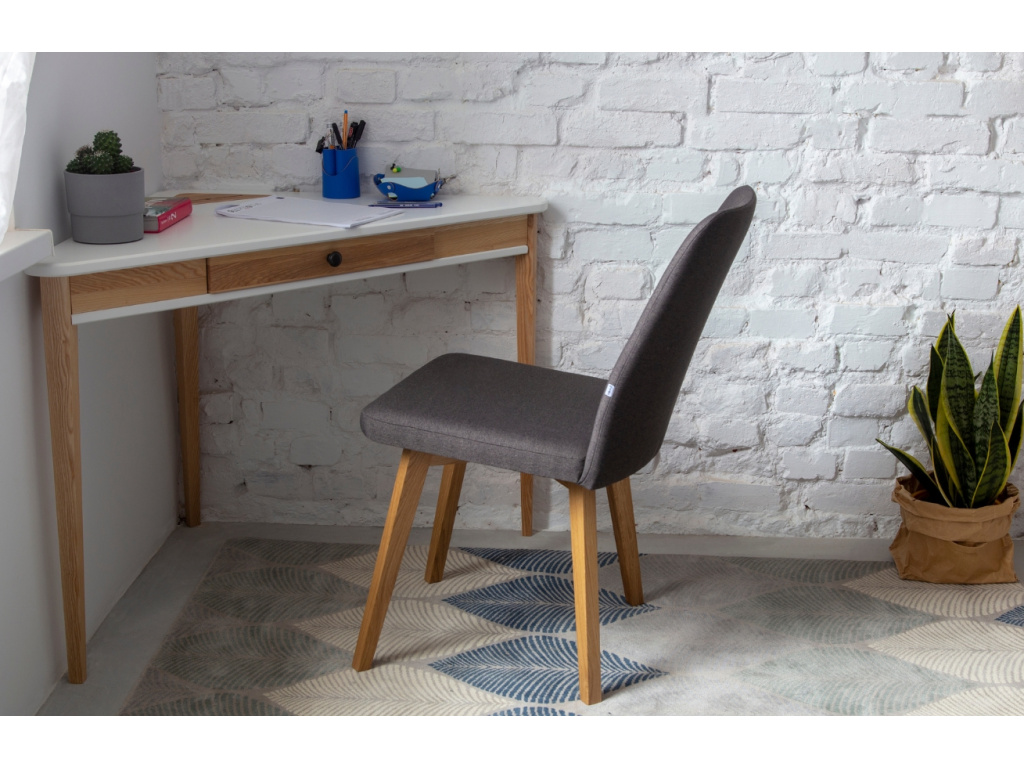 Pracovní stůl RAGABA ASHME je tady pro všechny, kteří kladou důraz na funkčnost a minimalistický design. Deska stolu je vyrobena z lakovaného MDF a doplňuje ji dřevěný organizér na vývod kabelů. Elegantní podnož tvoří tři dlouhé nohy, které jsou vyrobeny z jasanového dřeva. Na stůl se vám hravě vejde například notebook a kancelářské potřeby. Praktická zásuvka je opatřena tlumičem, který zajistí hladké otevírání a zavírání a nebude tak docházet k rychlému opotřebení. Díky svému tvaru a velikosti bude ASHME ideálním kouskem do menších interiérů či garsonky. Zároveň se stane perfektním designovým kouskem do vaší pracovny. Využití najde také v dětském nebo studentském pokoji.