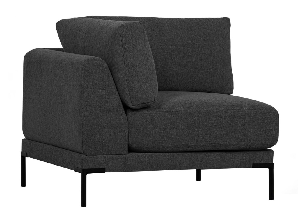 Rohový modul Coulee s vyšší elegantní podnoží je čalouněný tmavě šedou žinylkou s vysokým martindale. Coulee je součástí stejnojmenné série modulárních pohovek, díky které můžete dopřát vašemu obývacímu pokoji atraktivní prostor k sezení a odpočinku. Ten bude přesně odpovídat vašim potřebám a maximálně se přizpůsobí rozměrům místnosti. Rohový modul můžete snadno použít na levé i pravé straně vámi poskládané sestavy. Díky vysoké kvalitě použité látky se Coulee nemusíte bát pořídit ani do domácností s dětmi nebo domácími mazlíčky. Každá z částí modulární série je dostupná v šesti různých barvách - vyberte si tu svou! A pokud se nebojíte barev v interiéru, můžete moduly klidně nakombinovat.