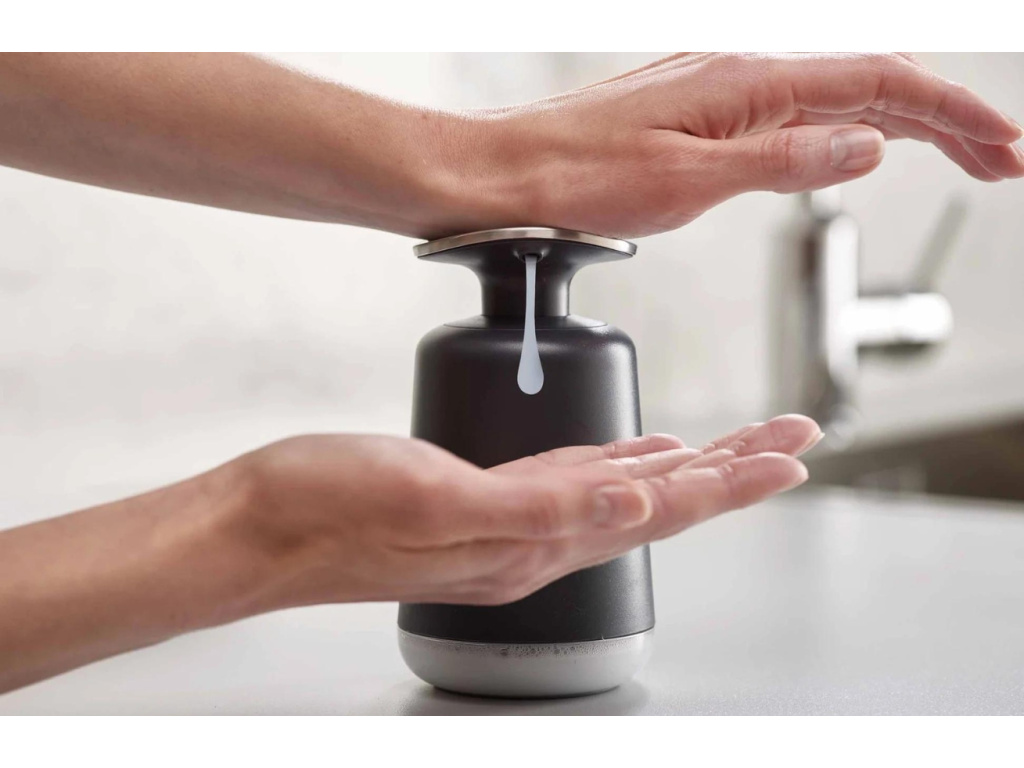Dodejte svému kuchyňskému dřezu nebo koupelnovému umyvadlu moderní nádech s tímto stylovým dávkovačem tekutého mýdla Presto! Chytrý design umožňuje ovládat pumpičku mýdla zápěstím nebo předloktím, proto se dávkovače znečištěnými dlaněmi vůbec nemusíte dotýkat. Hlava pumpičky v praktickém ergonomickém tvaru je vyrobena z nerezové oceli. Průhledná spodní část dávkovače vás upozorní na nutnost doplnit obsah nádobky a protiskluzná základna zajistí stabilitu při použití.