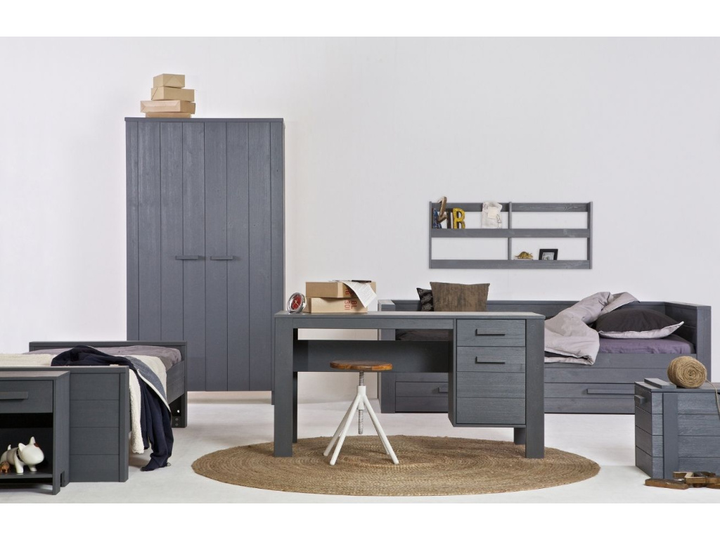 Pracovní stůl Koben je vyroben z masivního borovicového dřeva a lakovaný v univerzálním, nyní velmi oblíbeném, šedém odstínu. Výhodou stolu je praktický úložný prostor v podobě zásuvky a jedné skříňky. Pracovní stůl Koben bude stylovým doplňkem i praktickým pomocníkem do každého dětského i studentského pokoje.