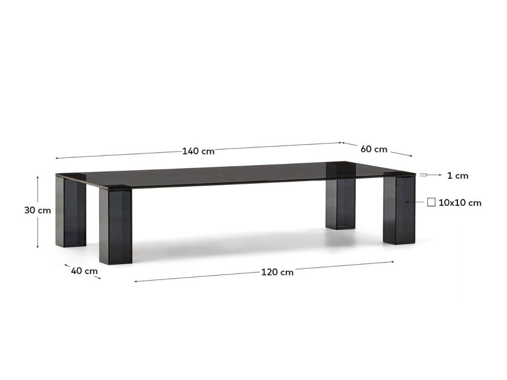 Tmavě šedý skleněný konferenční stolek Kave Home Adularia 140 x 60 cm