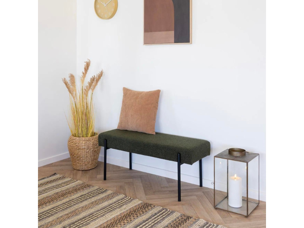 Lavice Swipper v tmavě zelené barvě je nejen skvělým doplňkem do jakékoliv místnosti, ale pro své rozměry i místem pro příjemný odpočinek. Její jednoduchý tvar perfektně ladí s černou kovovou podnoží, která lavici dodává vzdušný dojem. Víme, jak důležitý odpočinek je – užijte si ho v maximálním pohodlí!