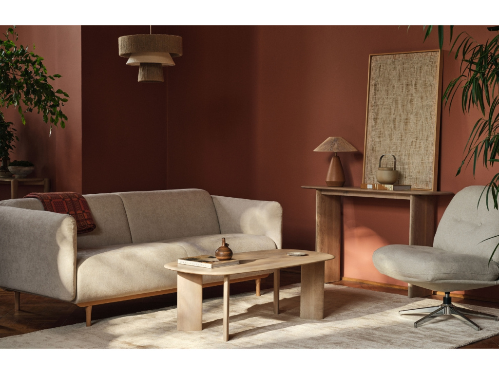 Kolekce Noomi přinese do vašeho domova lehkost, jemnost a přirozenou krásu severského designu. Ať už zvolíte dvoumístnou nebo prostornější trojmístnou pohovku, každá z nich je navržená tak, aby vytvořila harmonické místo pro odpočinek i sdílené chvíle. Její čisté linie, štíhlé područky a vysoká buková podnož působí tak lehce, jako by se vznášela nad podlahou. Čalounění ze strukturované látky dodává na hloubce i charakteru. Jemná textura vybízí k doteku, zatímco neutrální odstíny ladí s každým interiérem. Středně měkký sedák poskytuje přirozenou oporu i pohodlí při každodenním odpočinku. Díky své subtilní stavbě se Noomi hodí i do menších prostor, aniž by působila stroze nebo chladně.