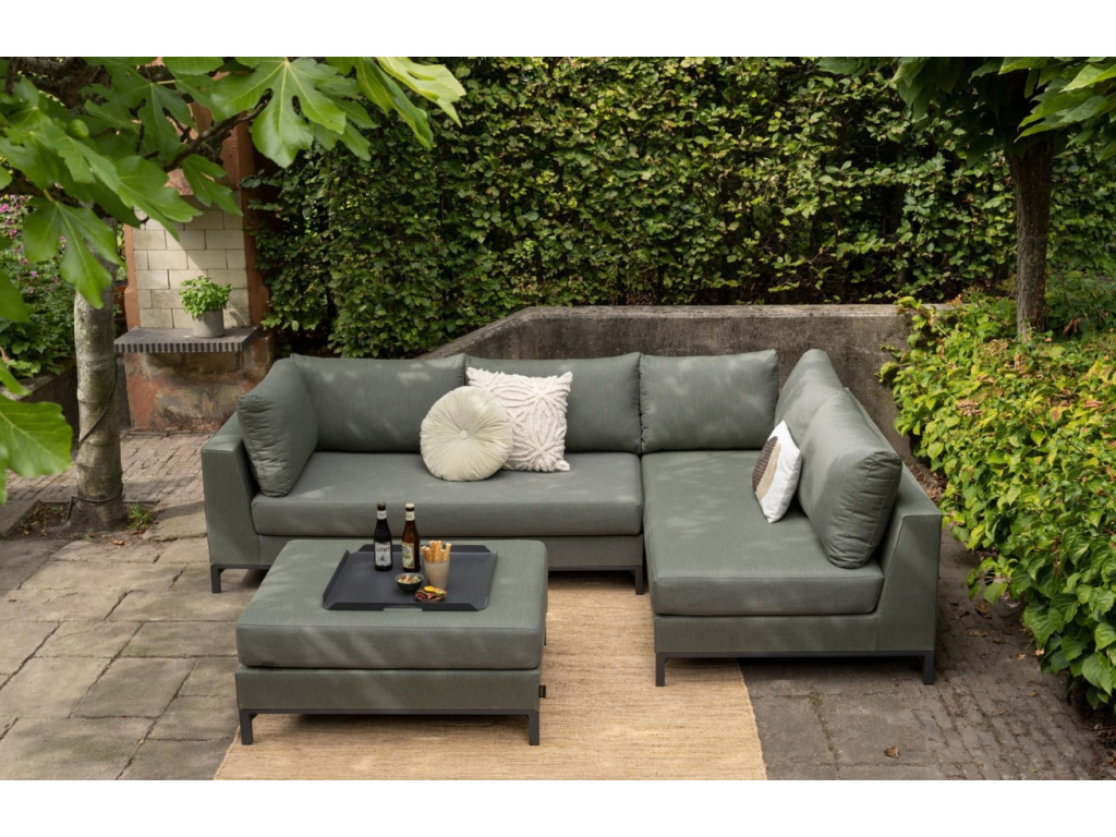 Stylová zahradní pohovka Jolle se skvěle hodí na terasu nebo pod pergolu, kde si s ní užijete chvíle odpočinku v maximálním pohodlí. Pohovka stojí na hliníkové konstrukci, která se pyšní svojí odolností. Sedací polštáře jsou čalouněné příjemnou látkou, která je vhodná do exteriérového prostředí. Pohovka se skládá ze čtyř dílů, jeden z nich navíc můžete využít třeba jako odkládací stolek. Užívejte si teplé letní dny s rodinou či přáteli ve společnosti pohovky Jolle.
