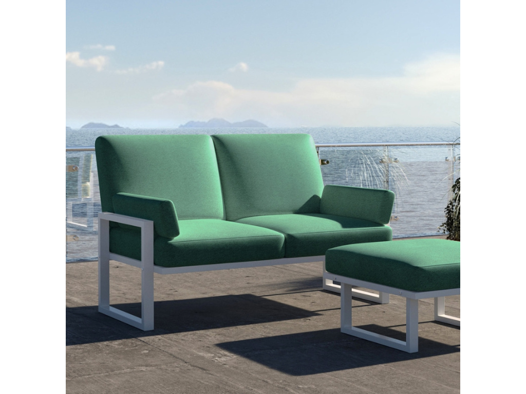 Tmavě zelená dvoumístná zahradní pohovka MESONICA Soledo s bílou podnoží 140 cm
