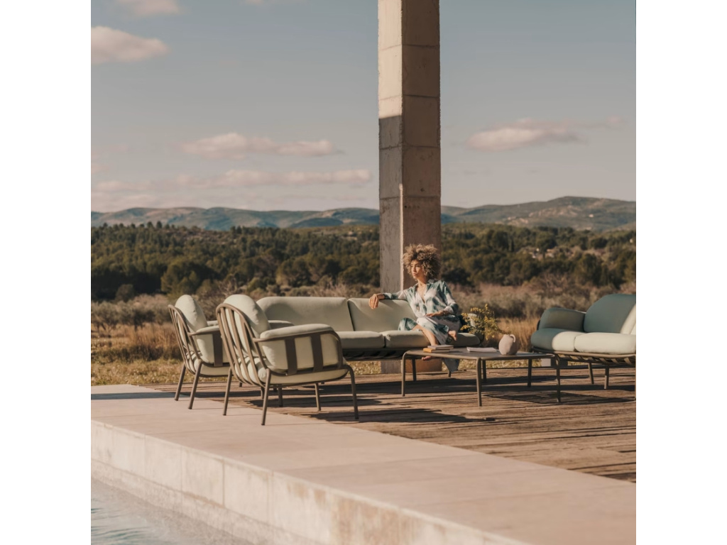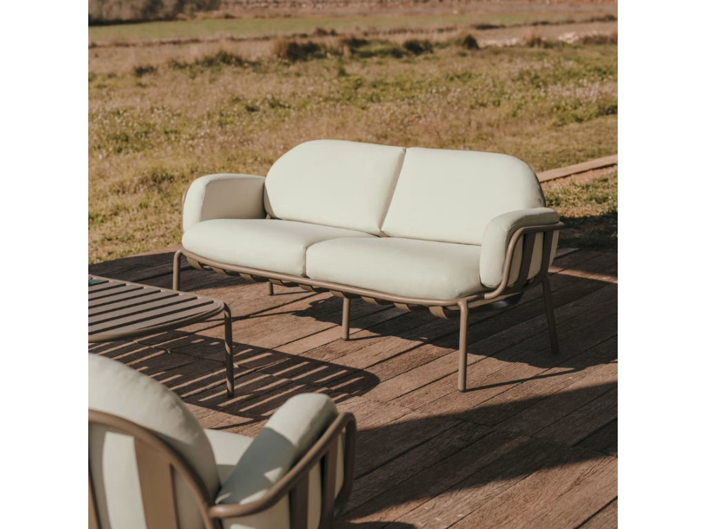 Doplňte své venkovní posezení stylovou zahradní pohovkou Kave Home Joncols s polštáři a hliníkovou konstrukcí tmavě zelené barvy. Díky použitému materiálu, který je odolný proti korozi i UV záření, je pro venkovní použití jako dělaná! Společnost vám ale může dělat i v interiéru – například v zimní zahradě. Hodit se bude všude tam, kde si chcete užít klidné posezení a dopřát si chvilku pohodlného odpočinku. Joncols pochází ze stejnojmenné série nábytku, díky které můžete vaše posezení dokonale sladit a dopřát mu čistý minimalistický design.