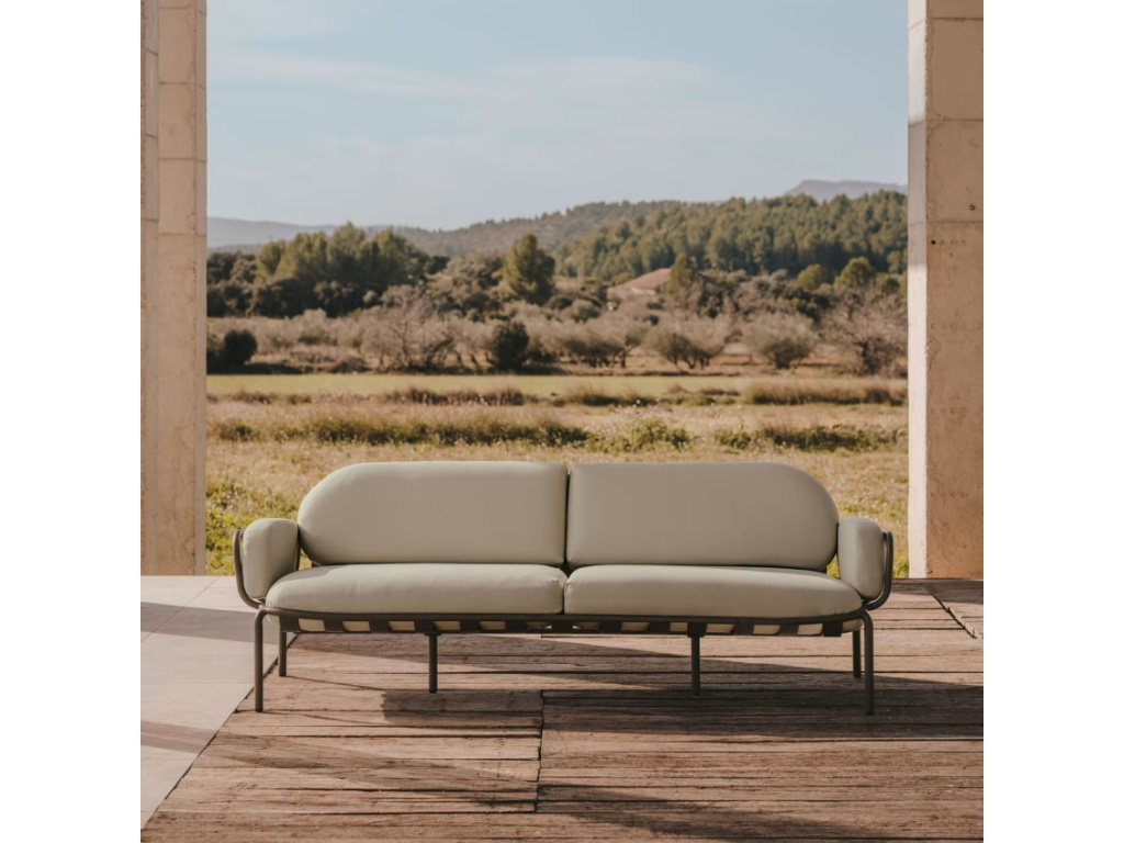 Doplňte své venkovní posezení stylovou zahradní pohovkou Kave Home Joncols s polštáři a hliníkovou konstrukcí tmavě zelené barvy. Díky použitému materiálu, který je odolný proti korozi i UV záření, je pro venkovní použití jako dělaná! Společnost vám ale může dělat i v interiéru – například v zimní zahradě. Hodit se bude všude tam, kde si chcete užít klidné posezení a dopřát si chvilku pohodlného odpočinku. Joncols pochází ze stejnojmenné série nábytku, díky které můžete vaše posezení dokonale sladit a dopřát mu čistý minimalistický design.