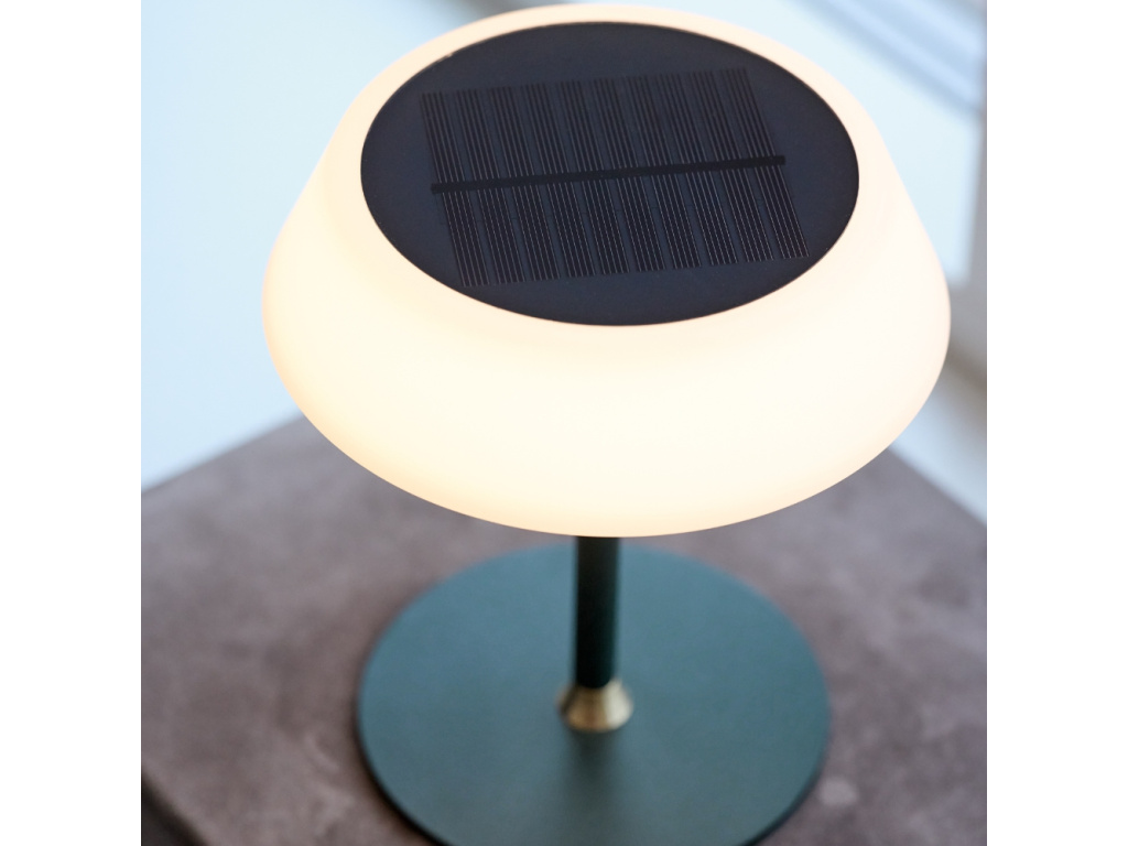 Podívám seTmavě zelená kovová nabíjecí stolní LED lampa Solar 19 cm