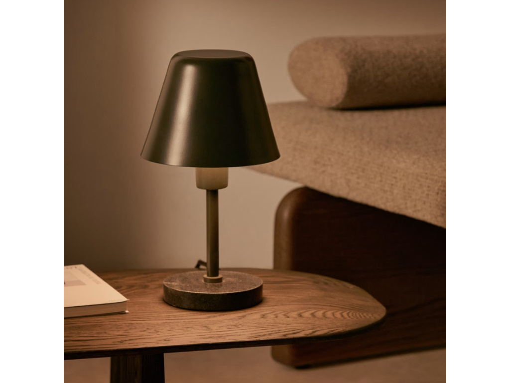 V jednoduchosti je krása – minimalistická stolní lampa Kave Home Calina bude skvělým doplňkem interiéru. Spojení tmavě zeleného kovu a černého mramoru z ní dělá elegantní kousek, který s vámi vydrží léta. Posviťte si s její pomocí na váš pracovní stůl, noční stolek nebo třeba komodu v chodbě – slušet jí to bude kdekoliv!