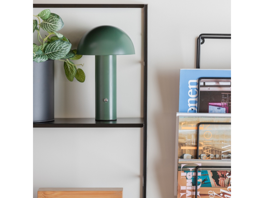 Stolní lampa Fungus v minimalistickém designu vám poskytne útulné osvětlení. Je vyrobena z kvalitního kovového materiálu v tmavě zelené barvě s matným povrchem a velkou výhodou je, že je přenosná a nevede k ní žádný nevzhledný kabel – stačí ji jednoduše nabít. Na přední straně má malé tlačítko na zapínání a vypínání. Je stmívatelná a volit můžete mezi třemi teplotami světla – 3000K, 4000K a 6000K. Lampa se bude perfektně vyjímat na pracovním stole i odkládacím stolku. Stejně dobře poslouží i na nočním stolku v ložnici nebo dětském pokoji.