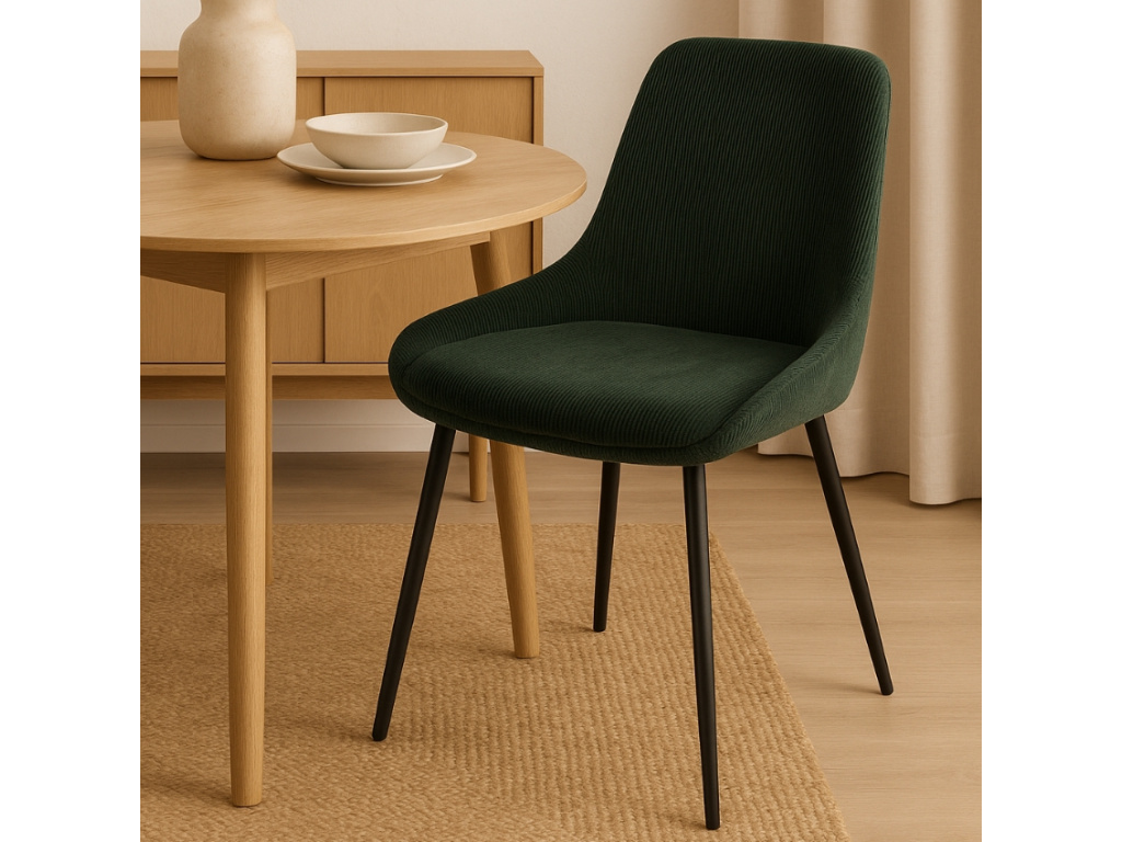 Jídelní židle Lex je nadčasovým kusem nábytku, který vám bude věrným a příjemným společníkem při každém stolování. Sedák zaujme čalouněním z manšestrové látky v tmavě zeleném odstínu a židle pevně stojí na podnoži z černě lakovaného kovu. Atraktivní propojení zvolených materiálů a designu vám zajistí pohodlí i při delším sezení. Elegantní židle Lex zkrášlí každou klasicky zařízenou jídelnu i zpříjemní sezení v komerčních prostorech.