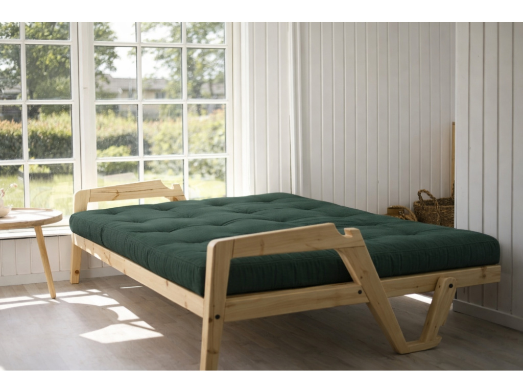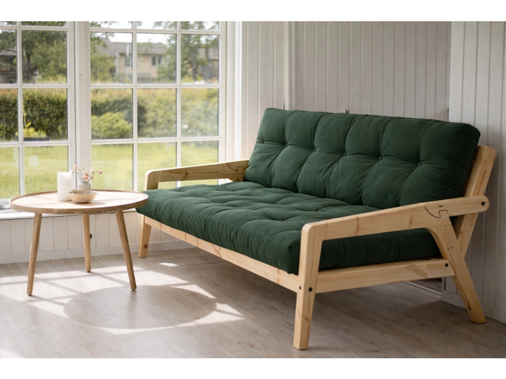 Třímístná rozkládací pohovka Grab značky Karup Design je dle slov designérů ideálním kouskem pro trávení společného času. Jednoduchým pohybem se elegantní pohovka promění na praktické lůžko. Konstrukce z masivního borovicového dřeva s FSC certifikací je doplněna kvalitní 14 cm vysokou futonovou matrací, která v sobě kombinuje recyklovaná vlákna a 4 cm pěnu. Praktickým detailem této pohovky jsou designové opěrky, které snadno odepnete a vytvoříte tak postel pro dva. Grab se skvěle hodí do skandinávsky laděných domovů. Představuje skvělé řešení především pro menší interiéry, kde oceníte další místo na spaní. Vybrat si ji můžete v další barvě konstrukce či v mnoha barvách matrací.