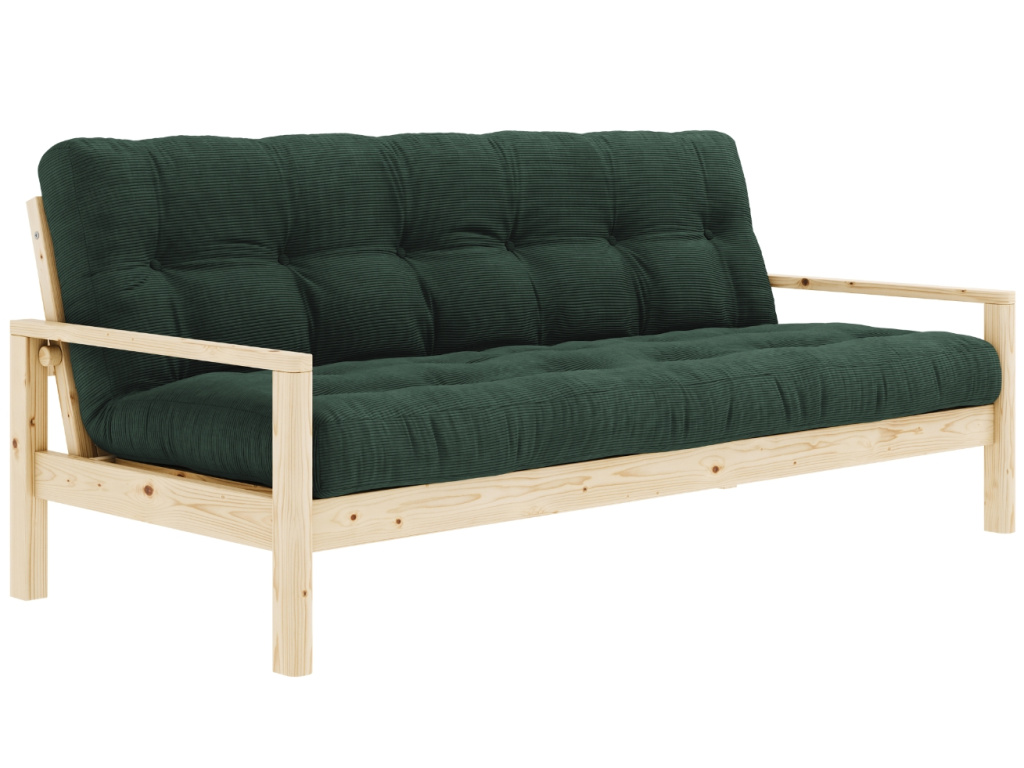 Pohovka nebo postel? Trojmístná rozkládací pohovka Knob od dánské značky Karup Design umí být obojím! Pod dřevěnými područkami se nachází dva nenápadné úchyty, které lze snadno odšroubovat a vy tak během chvilky získáte pohodlné lůžko pro vás nebo vaše hosty. Konstrukce z masivního borovicového dřeva s FSC certifikací je doplněna kvalitní 14cm futonovou matraci, která v sobě kombinuje recyklovaná vlákna a 4 cm pěny. Pohovka Knob fantasticky zapadne do skandinávských a japonských stylů interiérů, do kterých vnese jednoduchost, eleganci a ryzí funkčnost. Představuje skvělé řešení zejména pro menší prostory, do kterých přinese další místo na spaní. Vybrat si ji můžete v další barvě konstrukce či v mnoha barvách matrací.