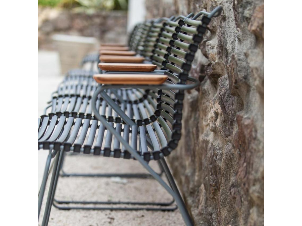 Zahradní židle HOUE Click II. zaujme svým moderním vzhledem. Židle Click klade důraz na moderní severský styl, díky čemuž zaujme na první pohled. Pohodlný sedák z plastových lamel, kovová podnož a praktické bambusové područky společně tvoří unikátní kousek nábytku, který vás osloví. Díky prodloužené délce zádové opěrky nabízí židle ještě větší míru pohodlí. Moderní design a osobitý výraz zdůrazňují celkovou podstatu židle. Židle je vhodná do exteriérového prostředí.