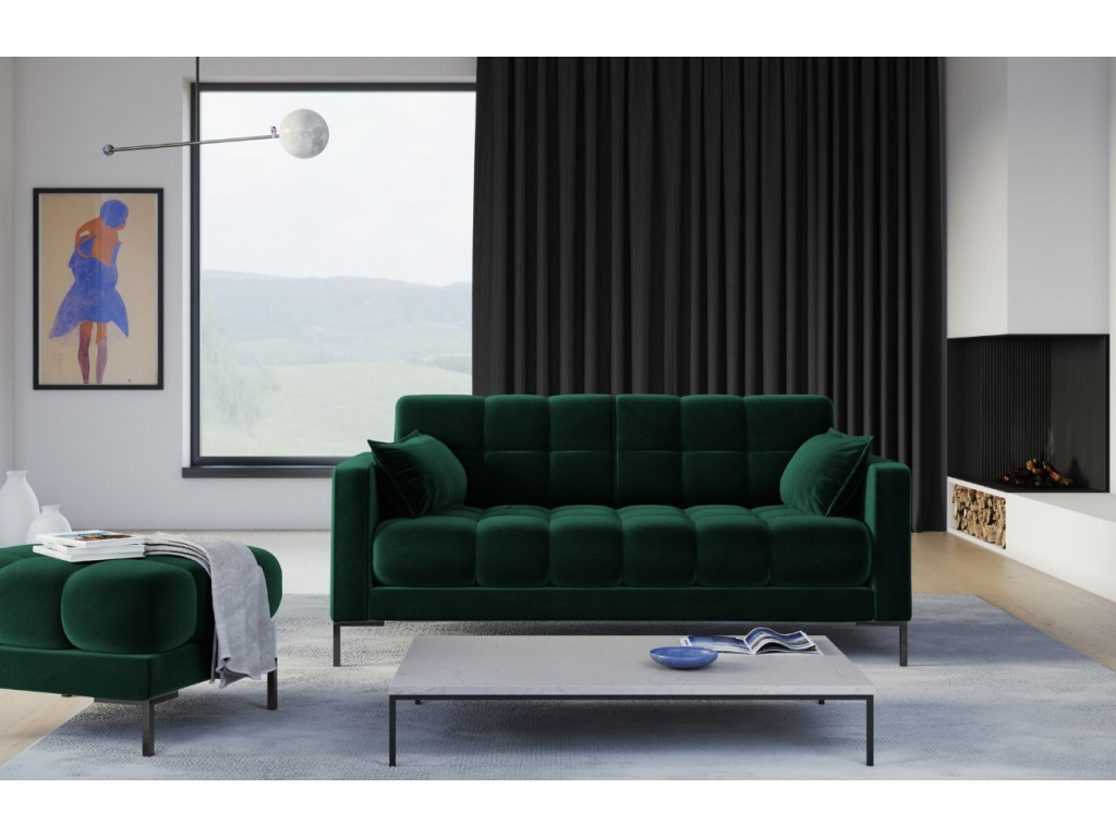 Elegantní dvoumístná pohovka Mamaia od značky MICADONI, která zaujme na první pohled svým nadýchaným vzhledem. Velmi příjemné sametové čalounění a černá kovová podnož vytváří kontrast, který interiéru dodá elegantní vzhled a nádech luxusu. Díky zajímavému prošívání vzniká jemný design, který do vašeho domova vnese lehkost a styl. Opěrné polštářky zvednou úroveň vašeho odpočinku o stupeň výš. Nechte se obklopit komfortem ve společnosti pohovky Mamaia.